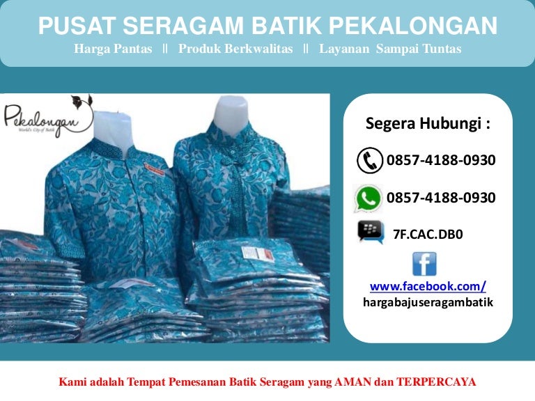 Toko Grosir Batik Pekalongan kami siap melayani penjualan grosir maupun eceran dengan harga cukup murah Toko Grosir Batik Pekalongan kami menyediakan berbagai model batik pekalongan yang khas dan menarik untuk kebutuhan busana dan fashion anda dari motif tradisional hingga corak batik modern dan kombinasi yang cantik dengan desain mencakup aneka busana batik pria batik