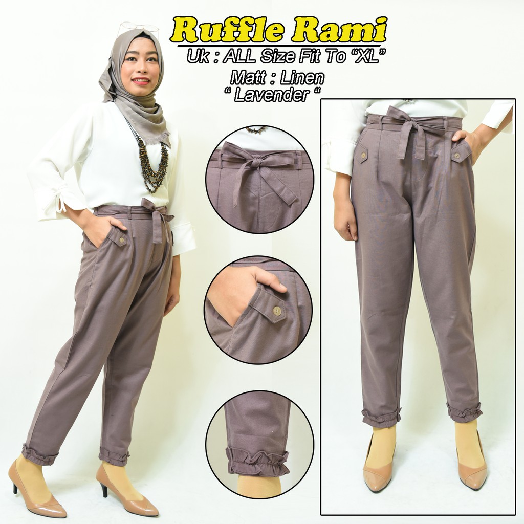 BASIC PANTS RUFFLE RAMI LINEN Celana panjang wanita Sumber : shopee.co.id